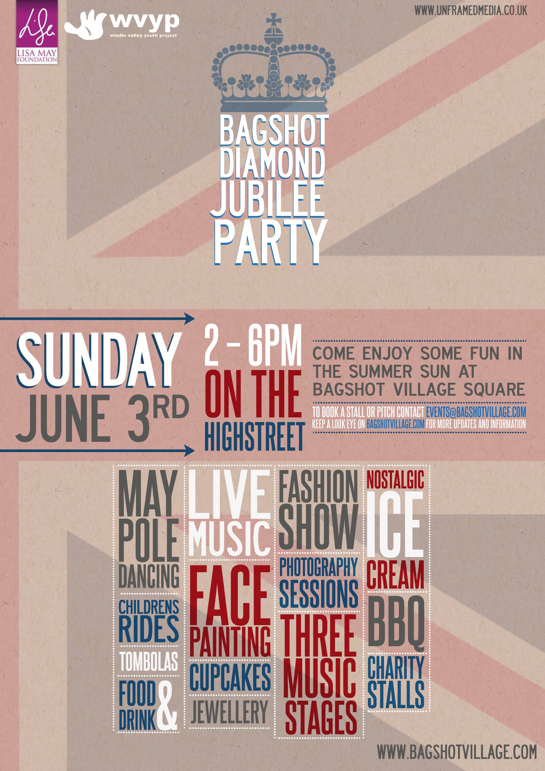 To celebrate in style the Bagshot Business Association has decided to put on a good old fashioned street party. Our foundation together with the Windle Valley Youth Project has been chosen to benefit from the profits from the day.